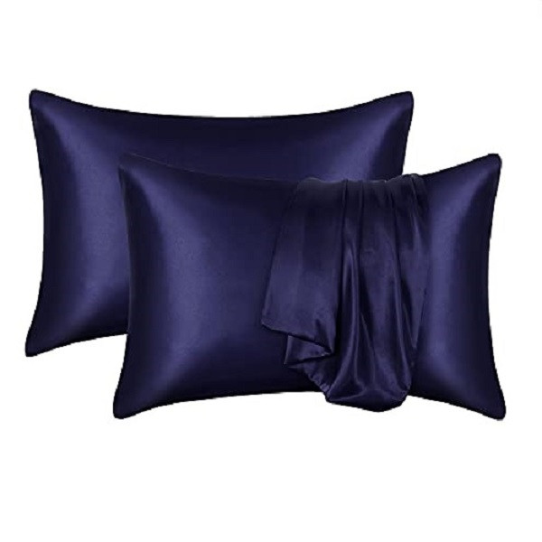 یک جفت روبالشی ساتن سورمه ای بهمراه اسکرانچی هدیه سایز 50 در 70